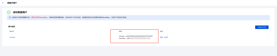 4. 妥善保管好生成的密钥(仅会出现1次)。