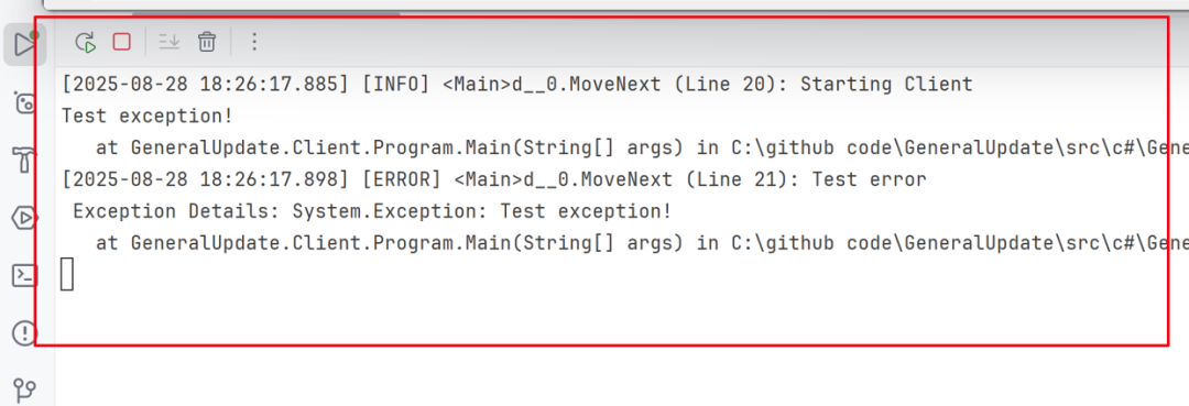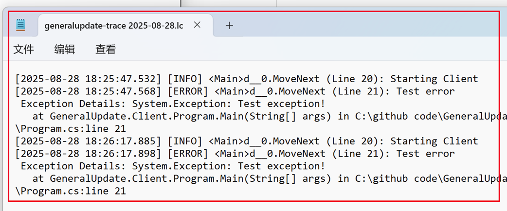 该文件默认生成在运行目录下的Logs文件夹中,文件名格式为generalupdate-trace {today}.log 该log未依赖第三方组件。