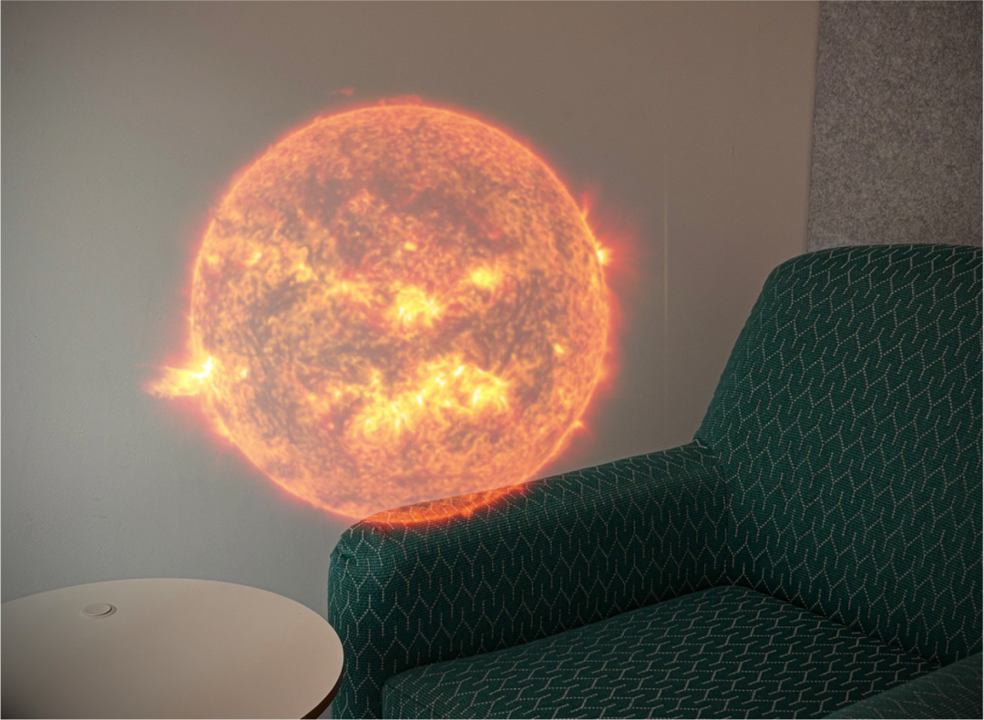 这里展示了几种类型的 AR 用例。图 4i 展示了混合现实体验,其中虚拟对象与办公室环境中的真实世界场景无缝融合。即时消息和通知分别在图 4j - k 中展示。请注意,经过 AR 波导后,斑点明显不那么明显,部分原因是与透明背景的加性对比度降低。