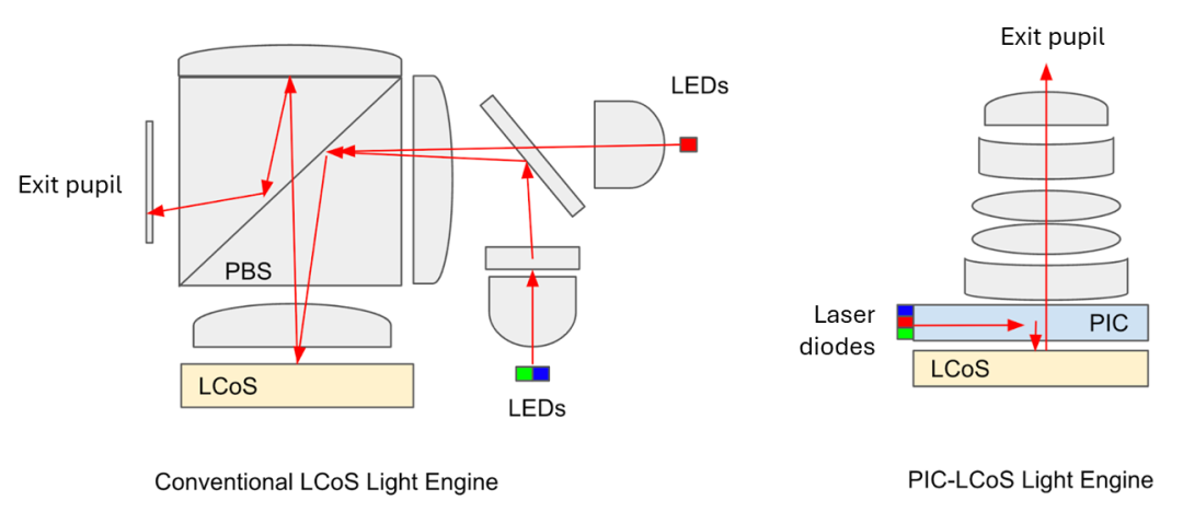 传统的LCoS显示引擎与本工作基于PIC的LCoS显示引擎对比: