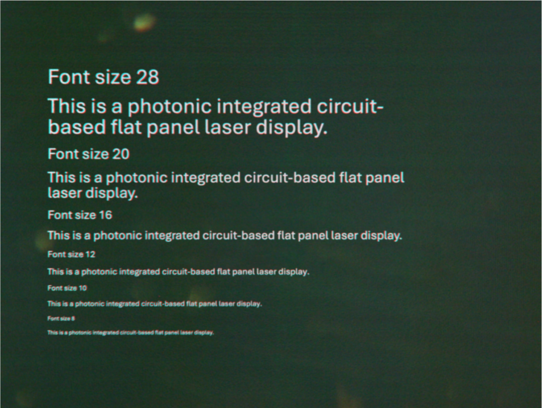 该PIC架构为现有和新兴的显示技术提供了一个通用平台。它与多种显示面板兼容,包括液晶显示器(LCD)、硅基液晶显示器(LCoS)、数字光处理显示器(DLP),并且具有广泛的应用,从智能手机显示器到 AR 眼镜再到新兴的全息显示器。作为概念验证,本工作展示了一种基于 PIC 和 LCoS 的用于 AR 应用的平板激光显示器,其中紧凑性、高效率和高亮度至关重要。