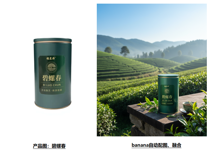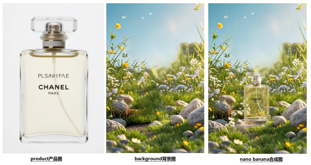 但现在,只需要把产品图和背景图上传,一个简单的提示词,它就能完美地把产品融入到背景里,毫无违和感。