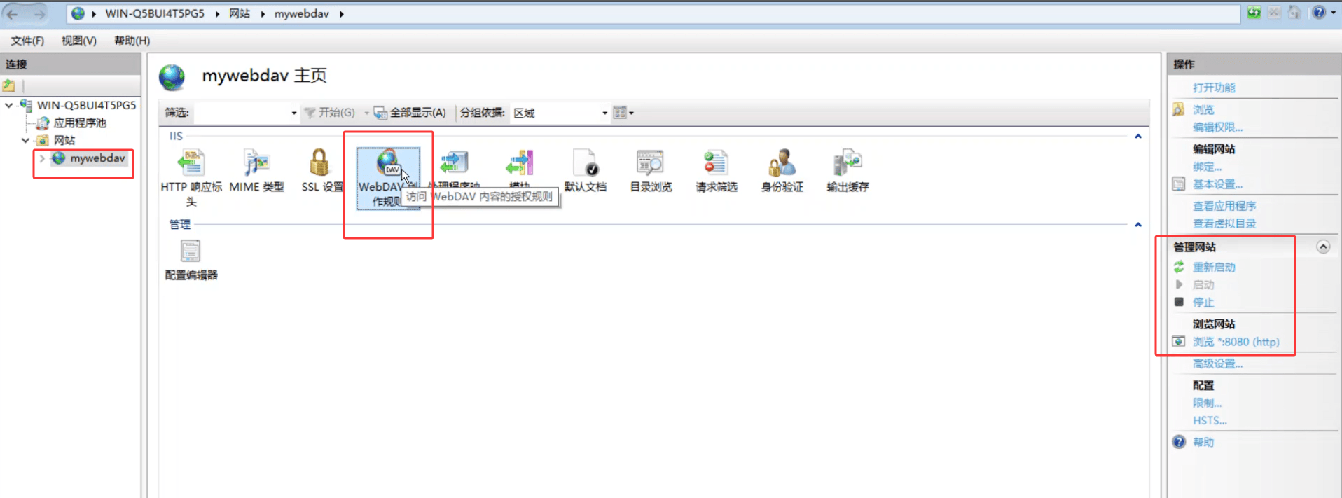 在【网站】->【WebDAV】下,双击【WebDAV创作规则】进入设置界面,启用WebDAV功能。点击“添加创作规则”,选择允许访问此WebDAV的用户,并为其设置相应的权限。
