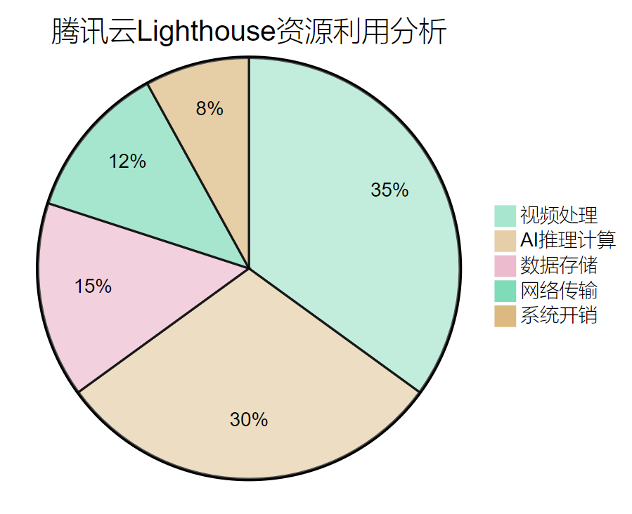 从这个饼图可以看出,视频处理和AI推理计算占据了主要的资源消耗,这正是腾讯云Lighthouse高性能计算能力发挥作用的地方。