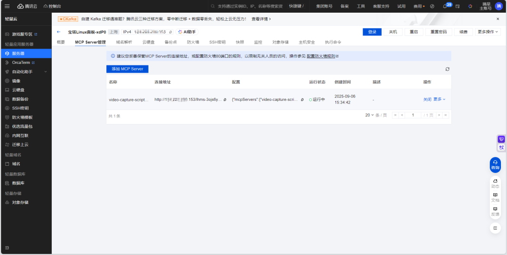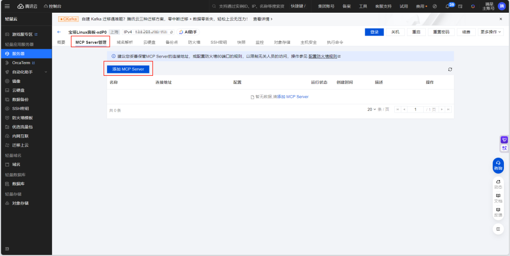 进入到宝塔面板中的MCP Server管理界面