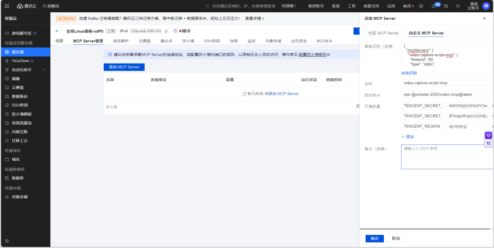 腾讯轻量云AI创想家视频分析AIMCP协议零代码部署多模态AI