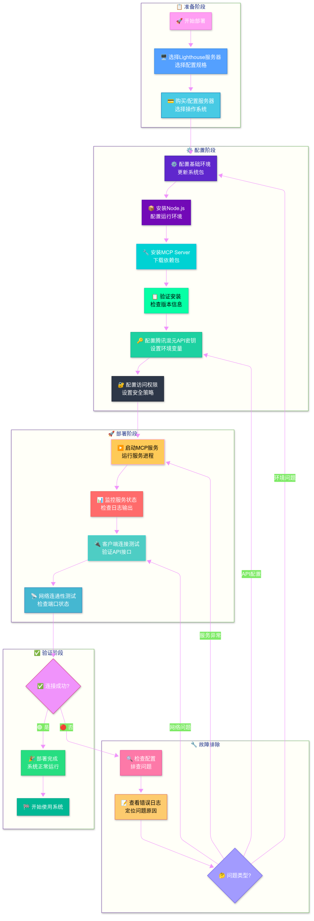 图2:零代码部署流程图 - 展示了从服务器选择到服务启动的完整流程