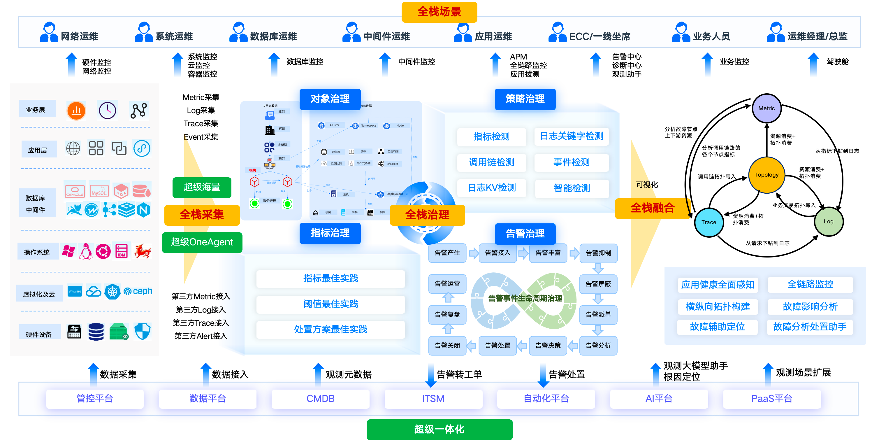 在数字经济加速渗透的今天,企业IT架构日益复杂,业务系统的稳定性与可观测性成为支撑业务持续运转的核心支柱。从基础资源到上层应用,从技术指标到业务场景,如何打破数据孤岛、实现全栈统一观测;如何借助智能技术提升IT故障响应效率,成为企业数字化转型中亟待解决的两大关键问题。