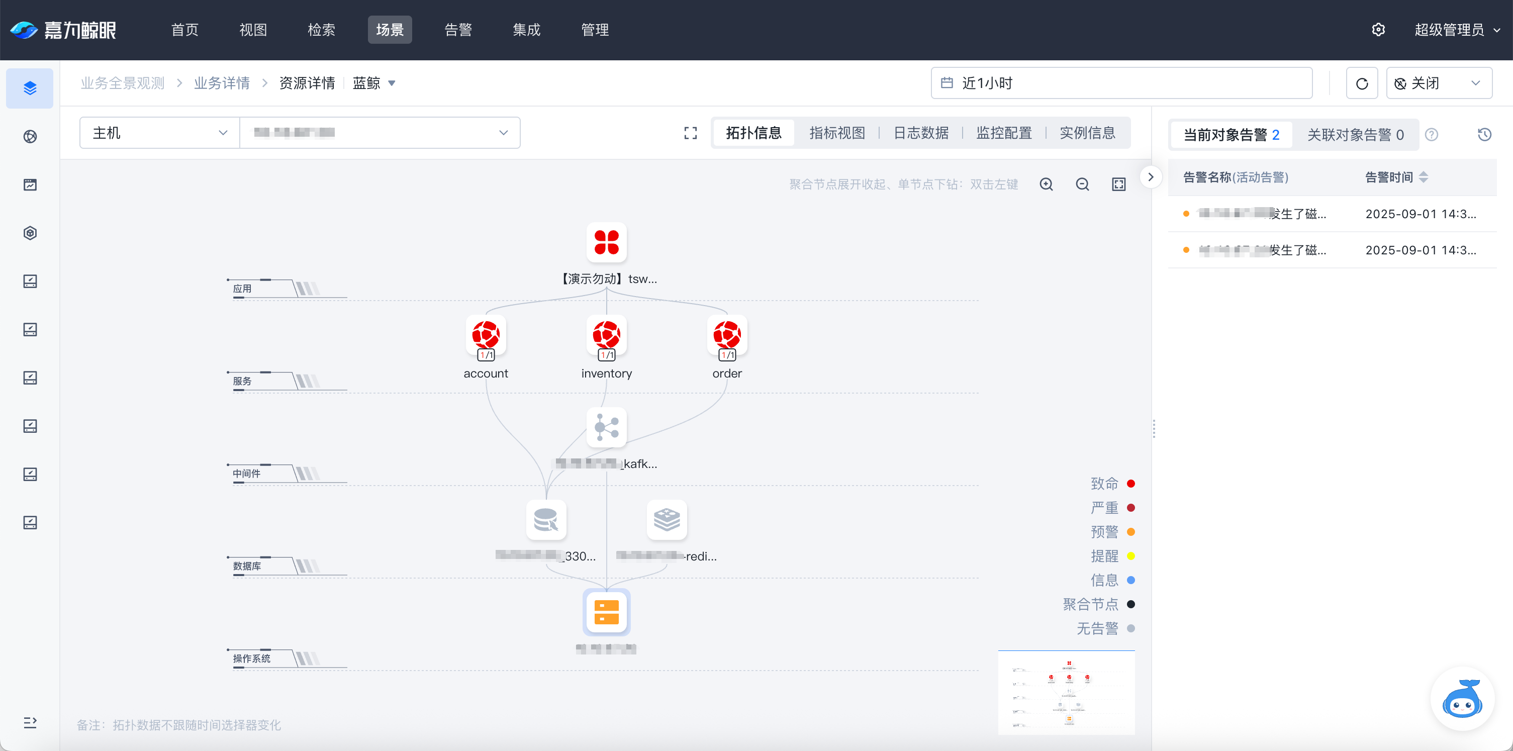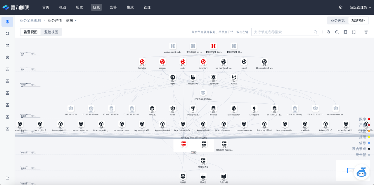 想实时掌握业务全貌?看这张拓扑图就够!节点、链路清晰呈现,异常状况一眼锁定,业务运行状态、资源上下游关联尽在掌握。不管是排查故障,还是优化业务架构,有它助力,效率直接拉满,运维人再也不用为 “摸不清业务脉络” 头疼啦!
