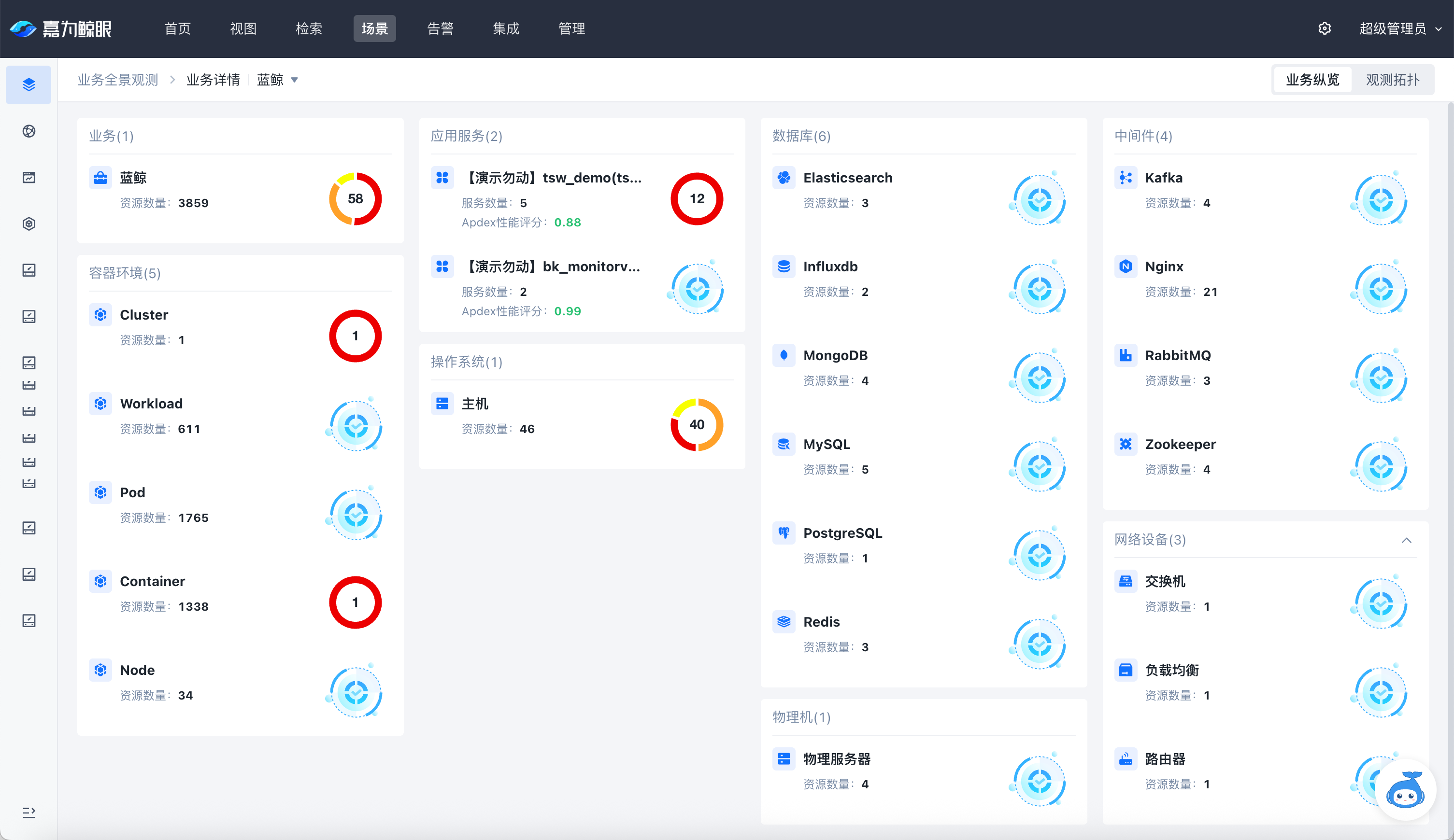 不管是业务、应用服务、容器资源,还是各类中间件、数据库等资源,都能在这清晰呈现,业务资源监控状态一目了然。有了它,可快速定位到有问题的资源,让运维排障效率直接拉满,谁用谁知道!