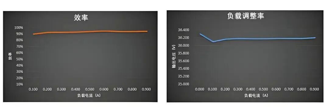 VIN=12V,VO=36V,IO=0.9A, @TA=25℃,效率在90%以上,负载调整率优异