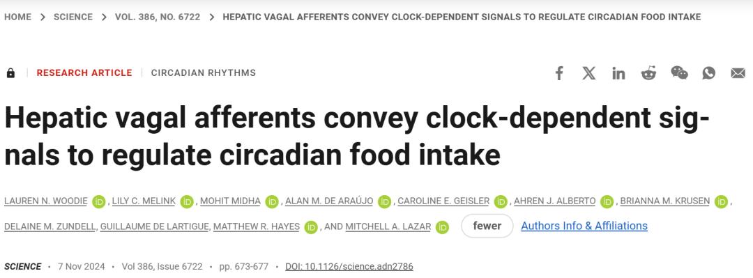 今天,发表在顶刊《科学》上的最新论文再度实锤节律紊乱能够诱发肥胖,会让大脑在错误的时间指挥胃口大开,并揭示肝迷走神经是治疗肥胖症的潜在靶点。
