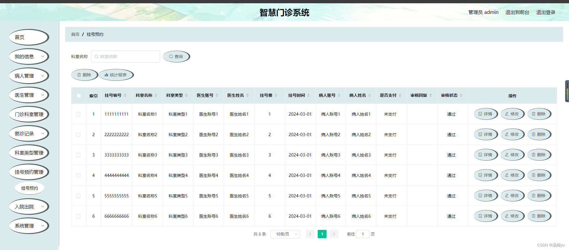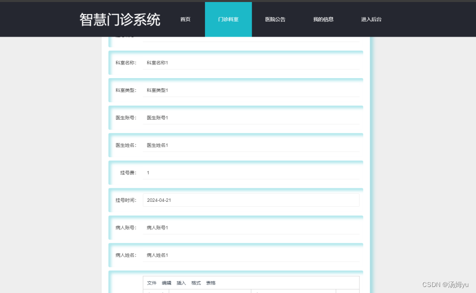 基于Python的医院智慧门诊系统旨在开发一个功能齐全,易用且具备较高扩展性的医院信息智能管理平台,其目的是提高医院的信息处理能力与服务效率,帮助医务人员与患者节省时间,主要任务是完成患者的挂号任务与医院信息的管理。系统依据Django框架,技术路线主要选择Python语言作为开发工具,联系数据库来实现系统的功能。系统的设计与实现基本内容如下: