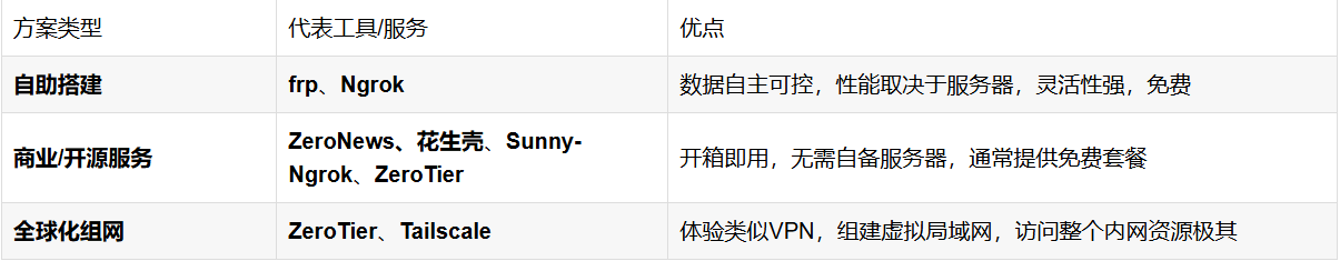 选择解决方案时,需权衡易用性、成本、性能和安全性。主要分为两类:自助搭建和使用商业/开源服务。