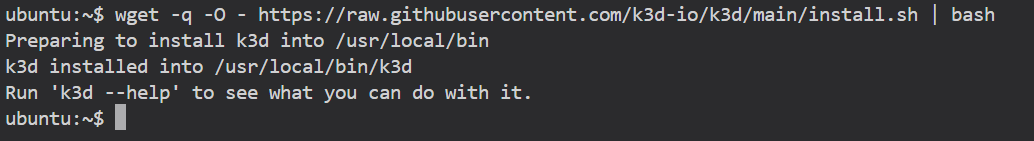 wget -q -O - https://raw.githubusercontent.com/k3d-io/k3d/main/install.sh | bash