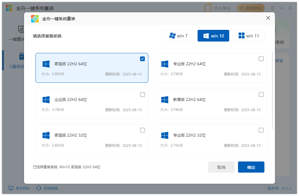 Step1、当前系统为win10,点击【选择】,选择需要重装的系统;