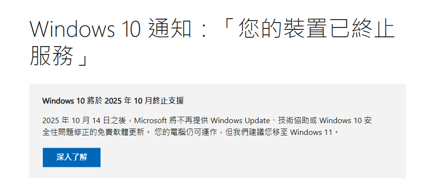 微软官方公告,windows10所有版本(包括家庭版、专业版、企业版等)的支持将于2025年的10月14日正式结束。此后,将终止一切服务,包括: