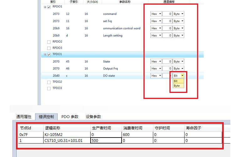在设置完通道偏移后,我们还需要进行错误控制设置。错误控制是确保通信过程稳定可靠的关键。通过设置适当的错误控制机制,我们可以在通信出现问题时及时发现并采取相应的处理措施。接下来,我们需要设置所有TPDO和RPDO的传输方式为周期同步。周期同步是一种高效的通信方式,它可以确保数据按照固定的周期进行发送和接收。与默认的事件触发方式相比,周期同步可以避免数据丢失的问题。