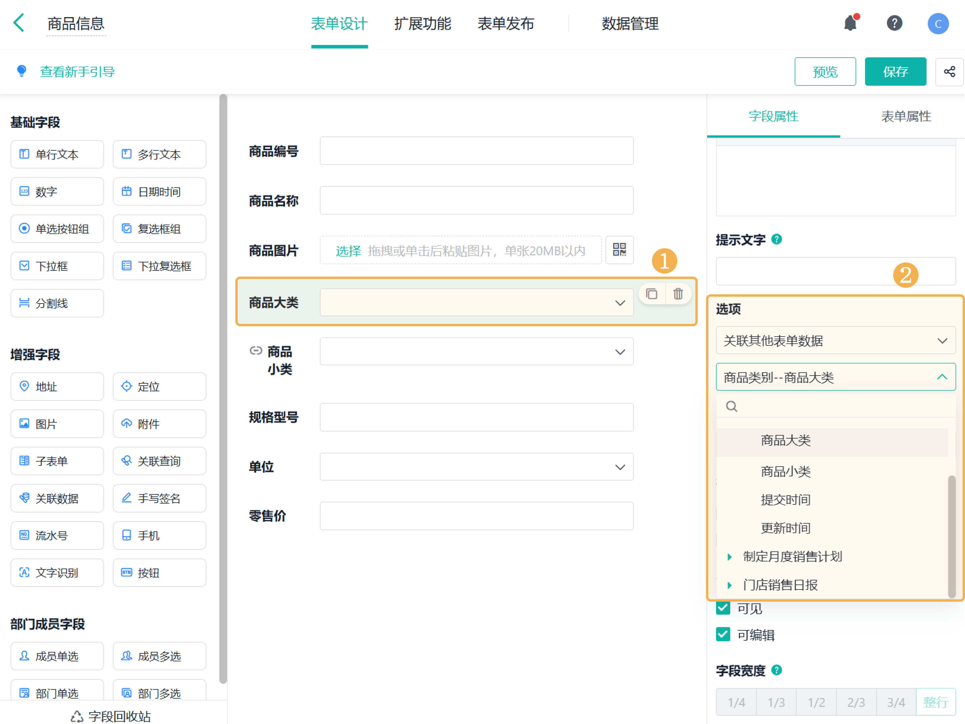 - 子表单控件:录入多条订单记录(比如不同商品的销售额)