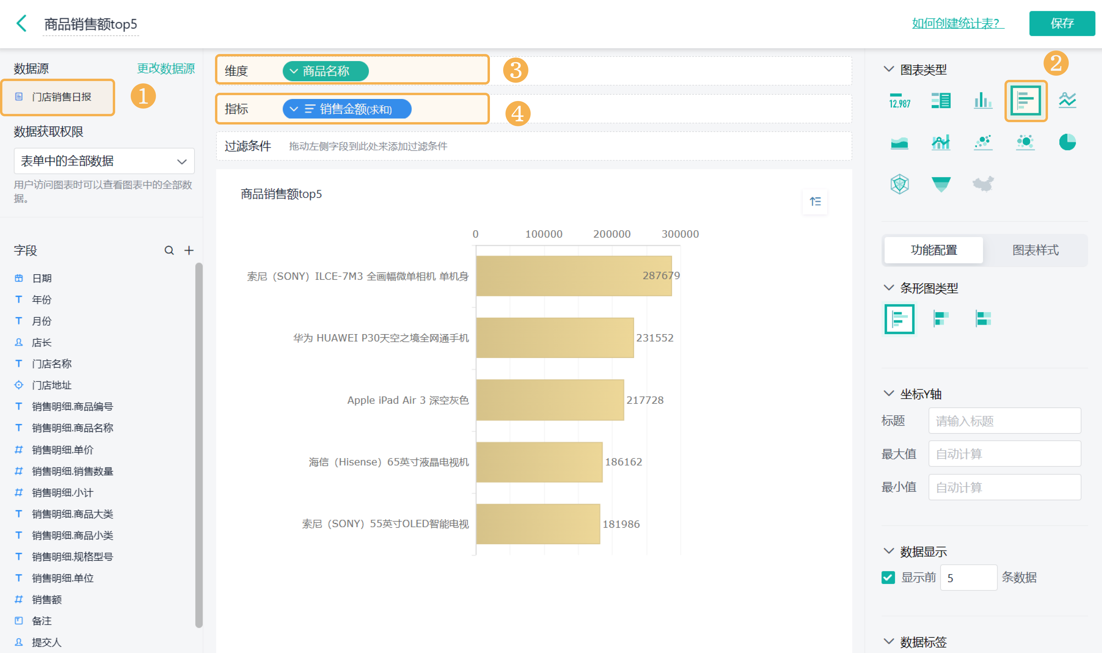 - 柱状图:展示各门店销售额对比(一眼看出谁表现好)