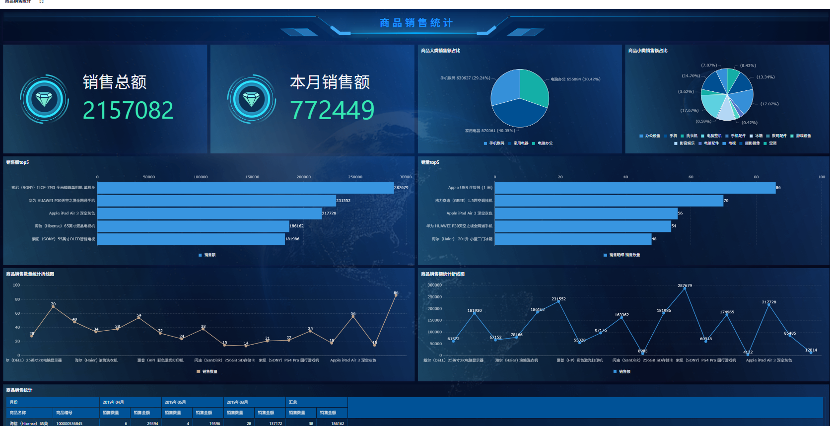 - 饼图:显示各商品类别的销售占比(快速发现热销品类)