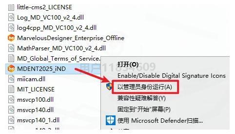 - 右键点击粘贴过来的"MDENT2025_iND.exe",选择"以管理员身份运行"。