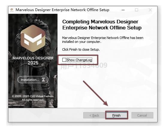 - 安装完成后取消勾选"Show ChangeLog",点击"Finish"。