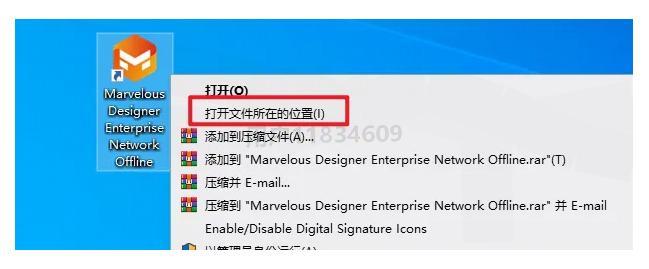 - 在桌面上找到Marvelous Designer图标,右键点击"打开文件所在位置"。