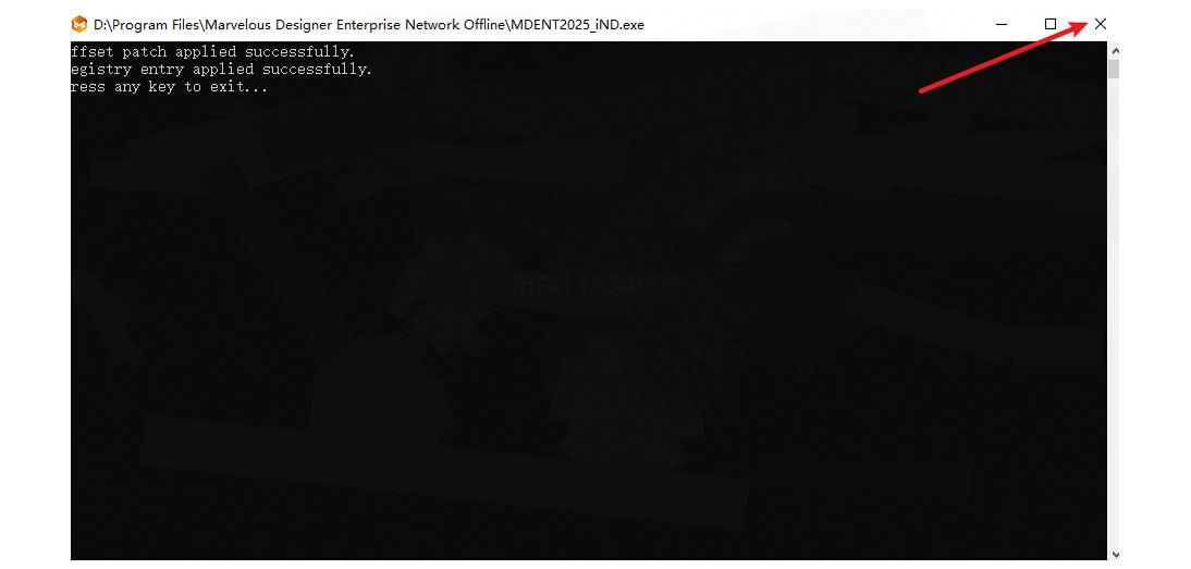 - 看到"successfully"提示后,点击右上角的"X"关闭窗口。