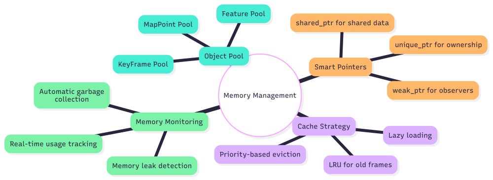 图6:内存管理策略思维导图 - 展示SLAM系统的资源优化体系