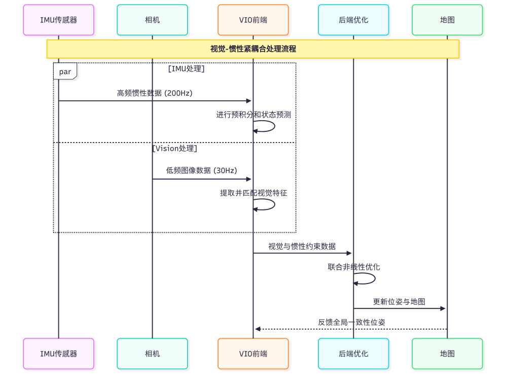 图2:视觉-惯性紧耦合时序图 - 展示传感器数据的实时融合过程