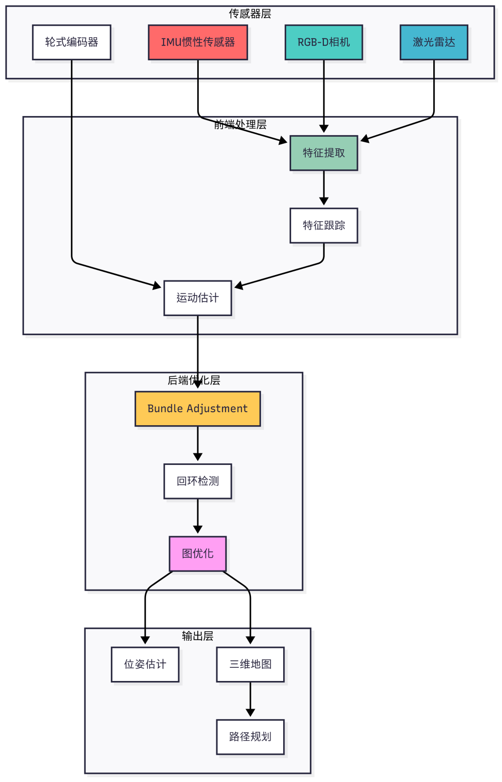 图1:Rokid SLAM整体技术架构图 - 展示从传感器到输出的完整数据流