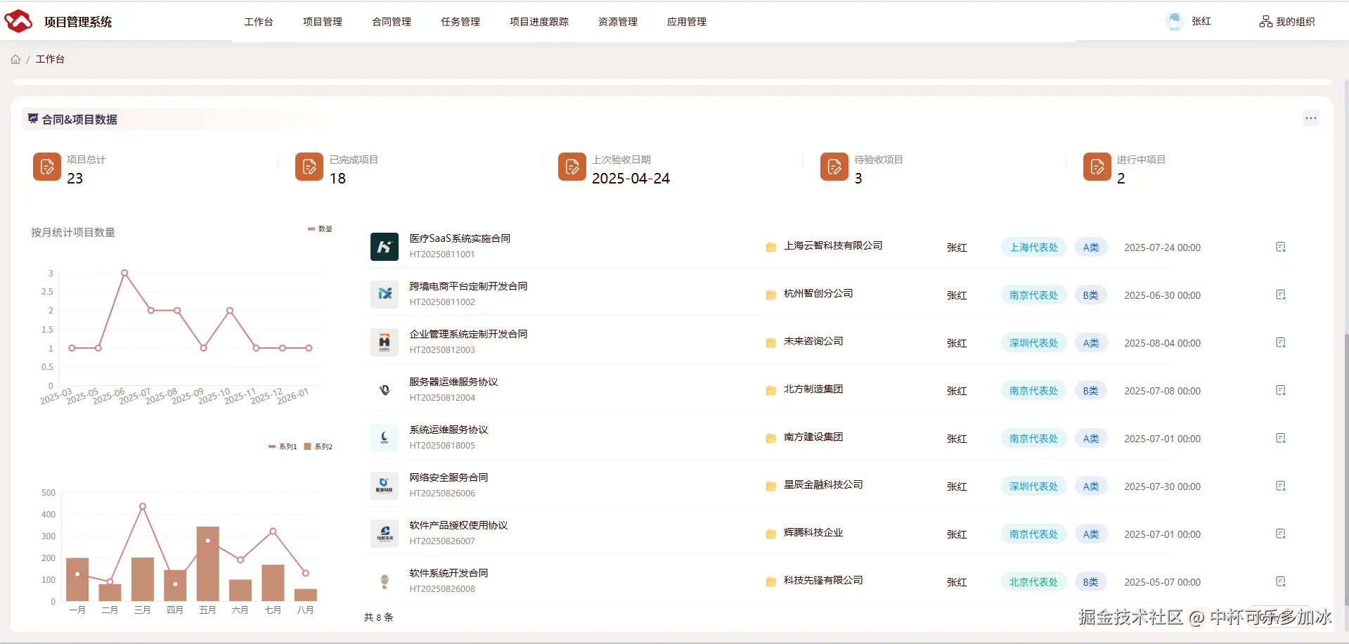 预览后可以看到,左侧清晰展示了所有合同的名称,选中对应合同即可展示项目信息。