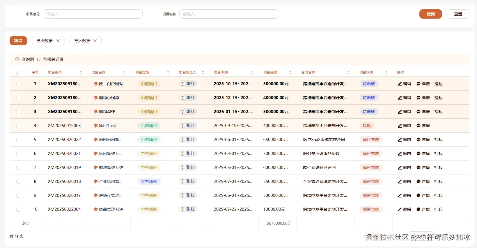 通过以上对列表表格组件的配置与优化,我们就能够快速打造出一个清晰、美观的项目信息列表。