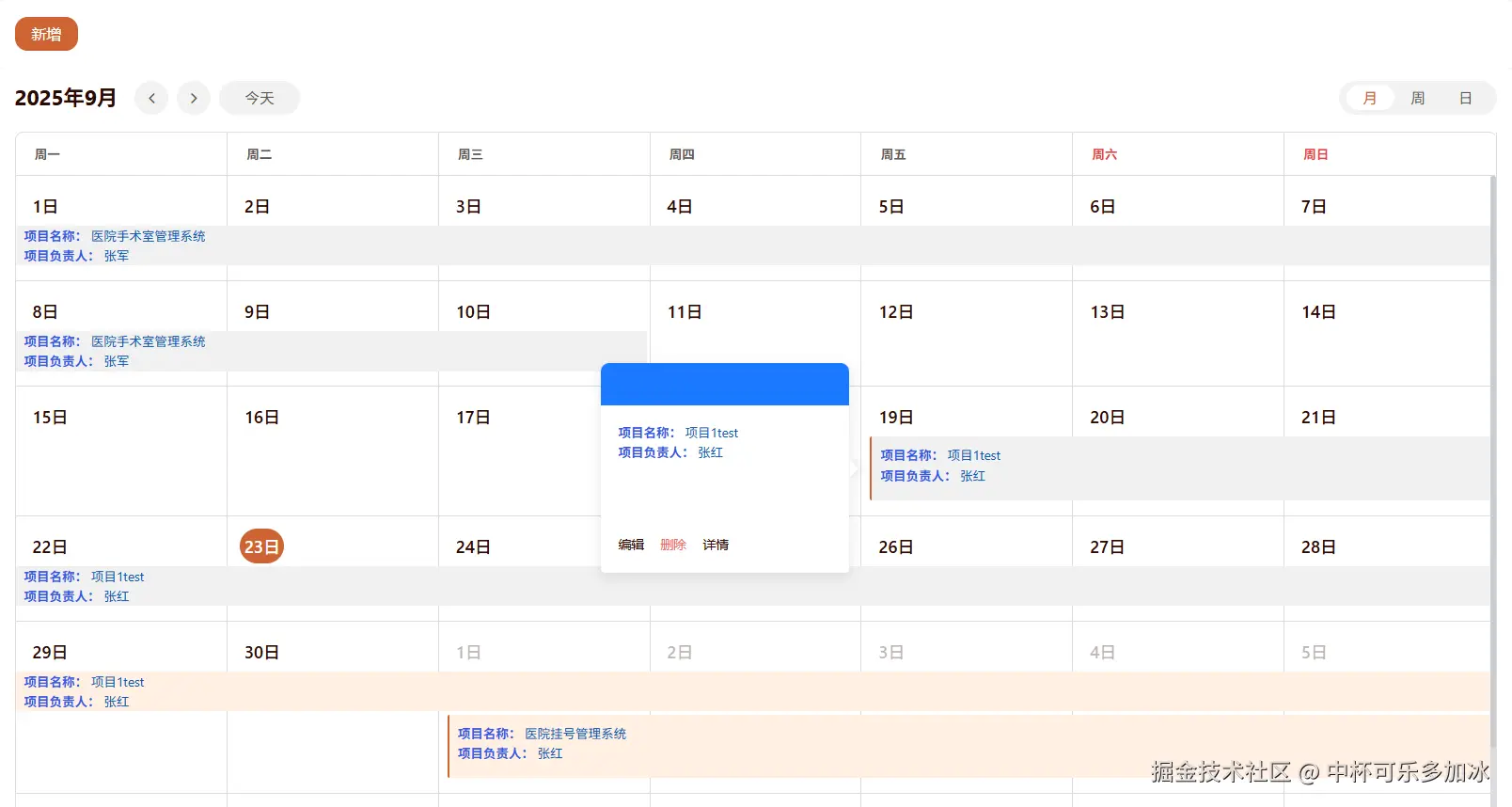 预览后,我们可以以直观的日历形式看到每个月项目的排期,以及对应的负责人。