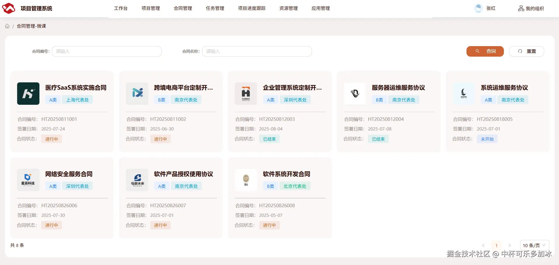 预览后,可以看到大约几分钟就能实现合同信息的卡片展示。