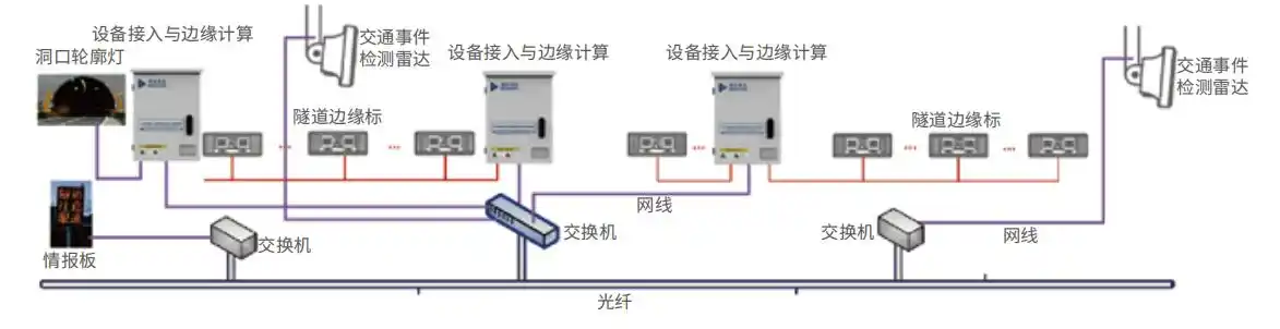 设备接入与边缘计算设备—接入系统各类设备,分析研判交通事件,智能决策系统响应策 略,对管辖的隧道边缘标进行组态协同控制与工作模式调度,与云端或上位机系统进行交互。