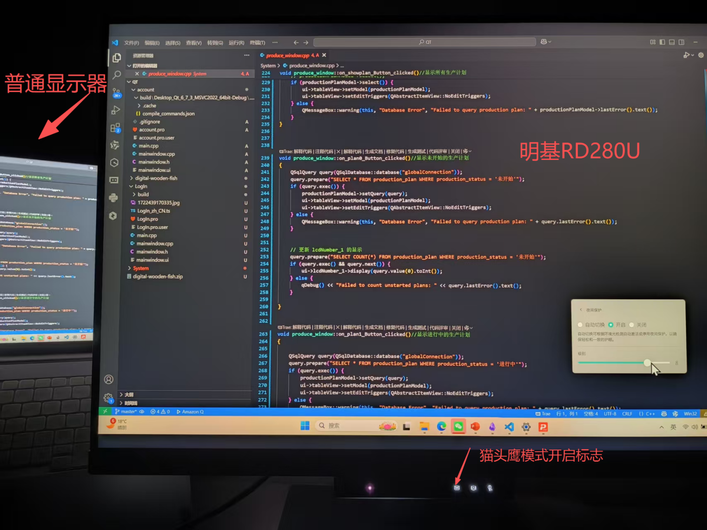 更糟的是夜间编码:为了不打扰家人,只能开小台灯,普通显示器要么反光看不清变量,要么亮度调低后代码偏色,写两小时眼睛就干到要滴眼药水。