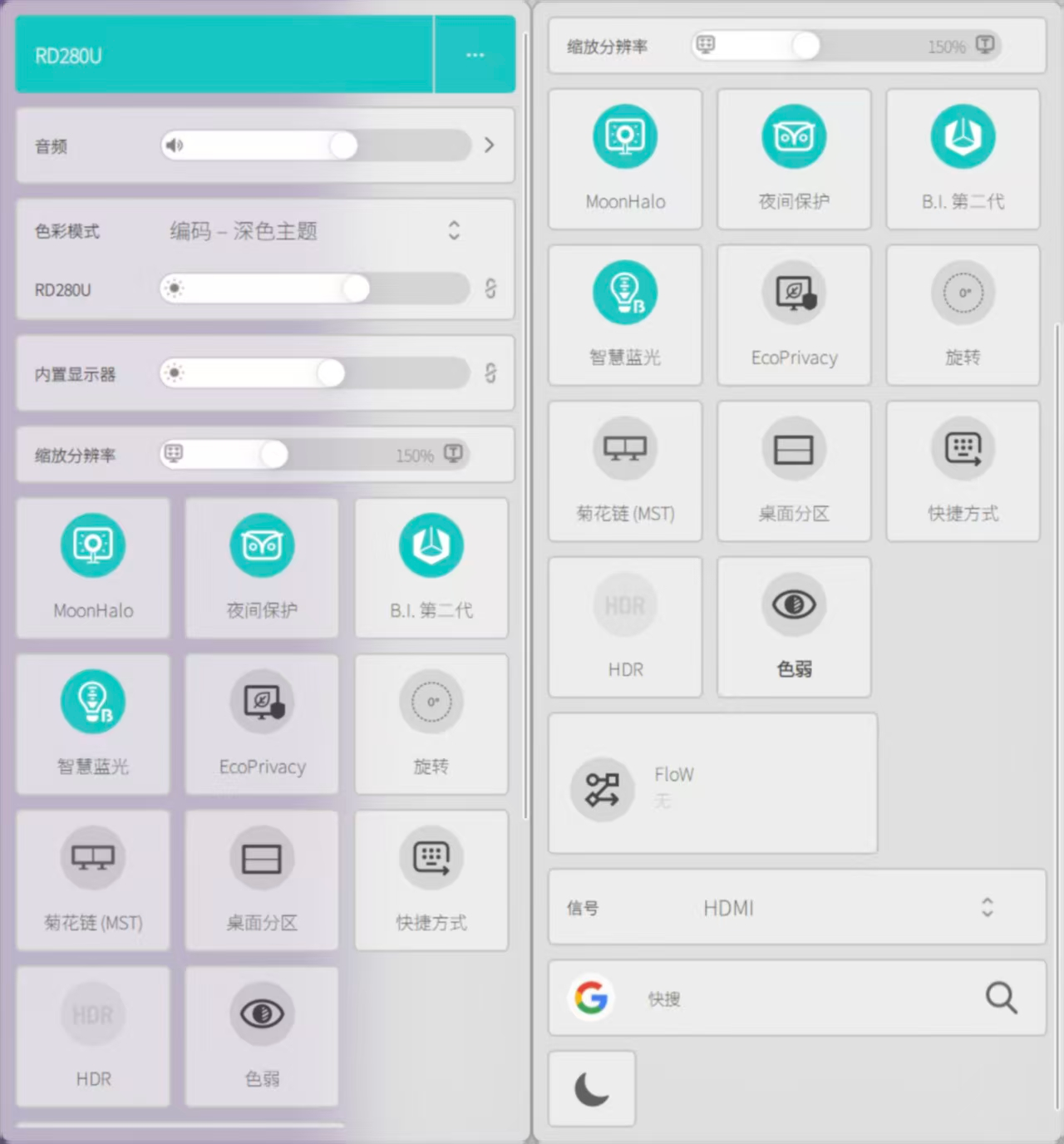 这款显示器的几乎所有功能都可以通过这款软件来控制,功能太多了,我就不一一展示了像上面说到Moonhalo和猫头鹰模式、智慧蓝光等功能,都可以在这里设置自动开启管别和自动调整