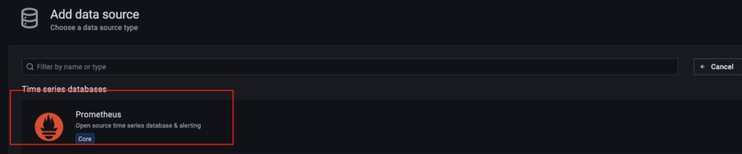 在数据源列表中选择:Prometheus
