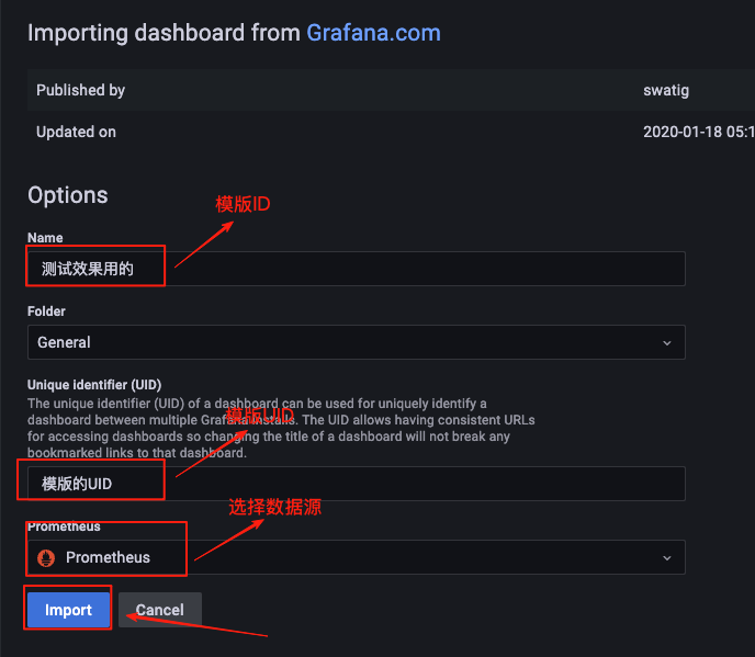 添加自定义模版时,先在prometheus上调试语法,调试好了复制到granfana,这样调试更加方便一些