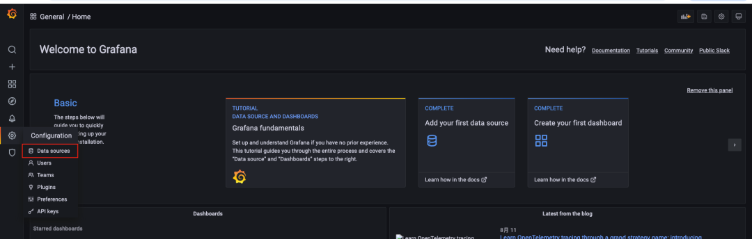 点击 Add data source 进入数据源配置页面