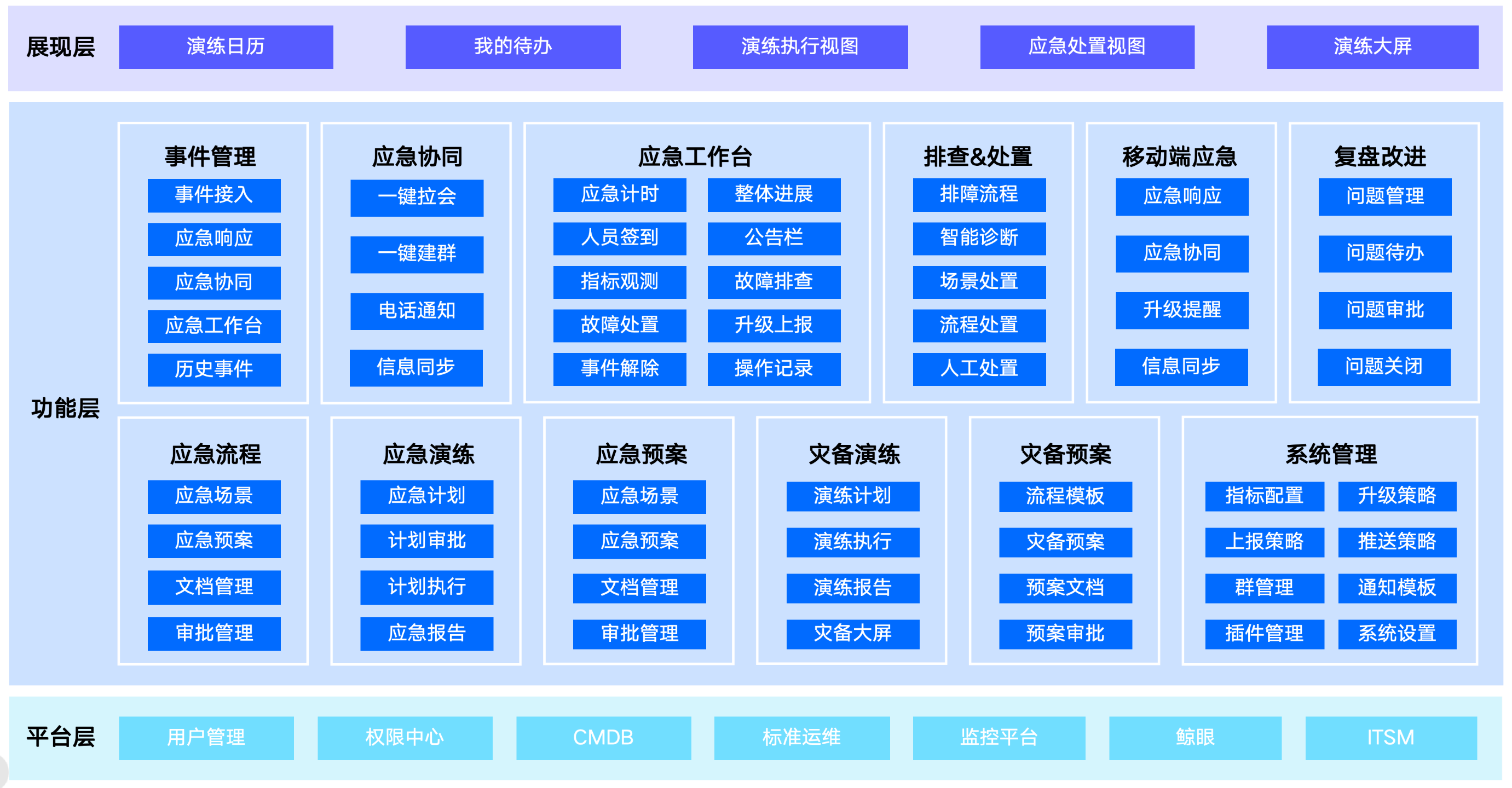 应急系统接入蓝鲸平台权限中心,实现页面访问权限与功能操作按钮的统一管理。