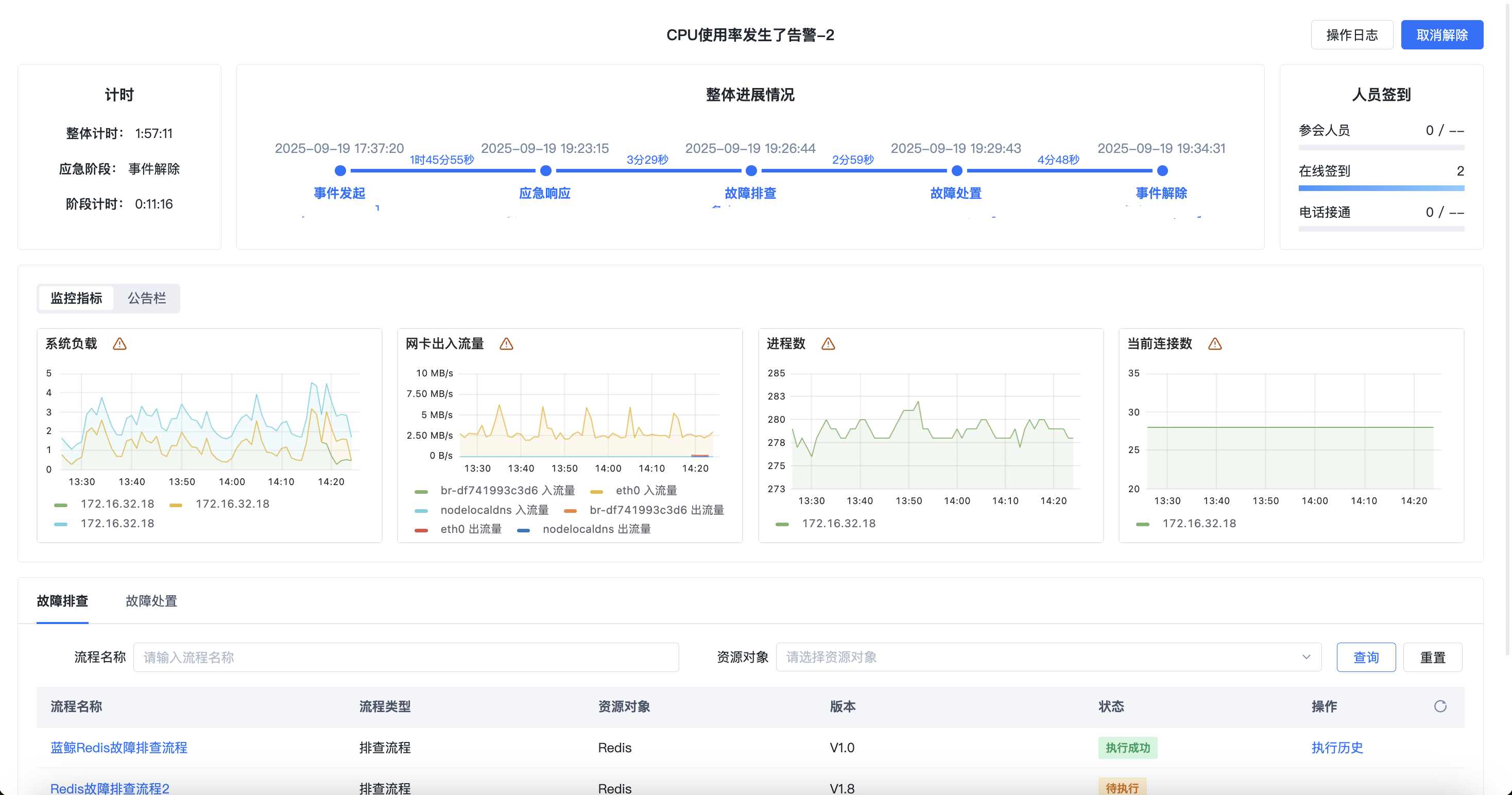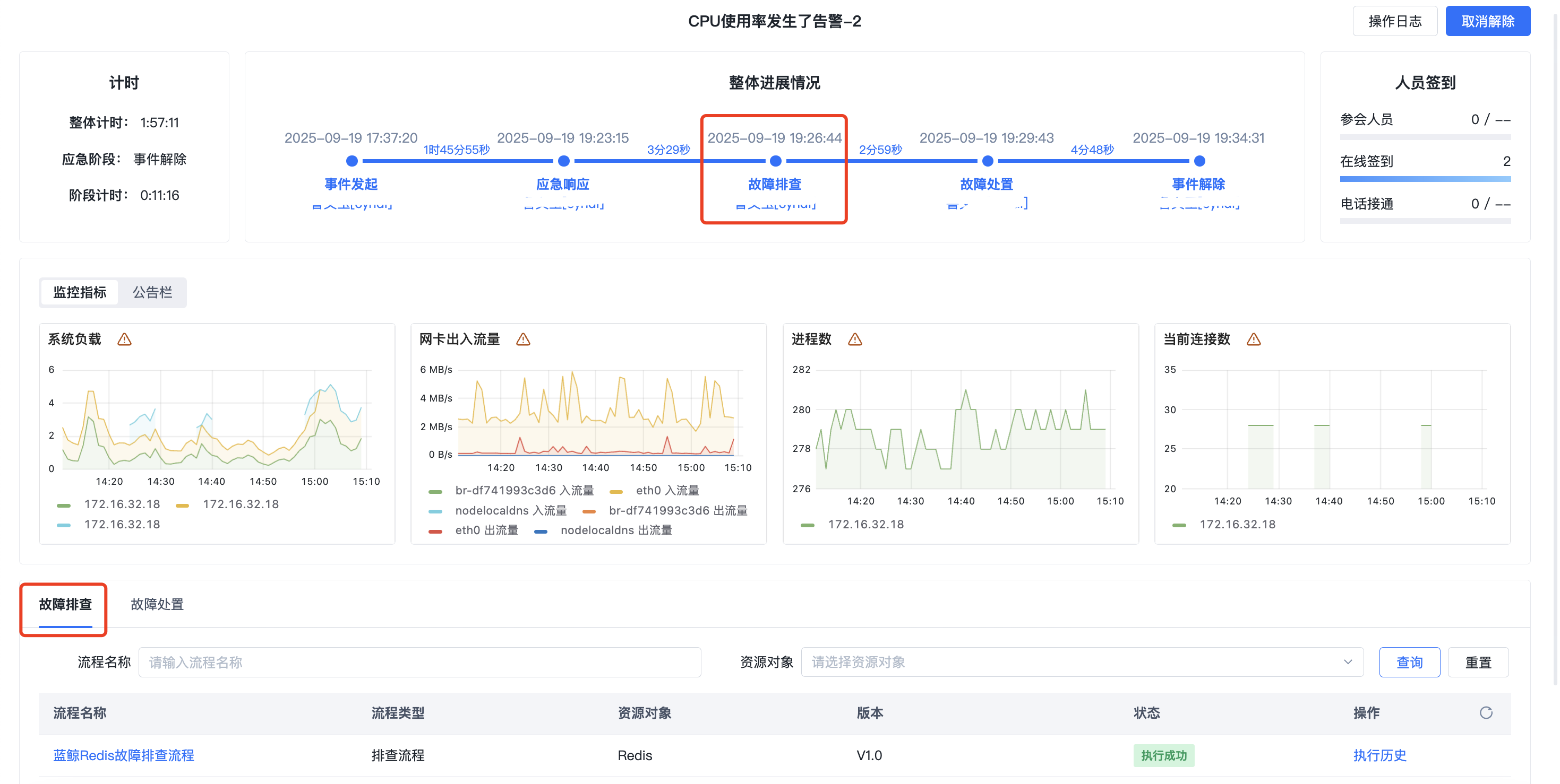 一键式故障智能排查定位:新增应急事中故障排查定位环节,用户可一键式执行故障排查定位流程,对当前故障事件进行排查定位。
