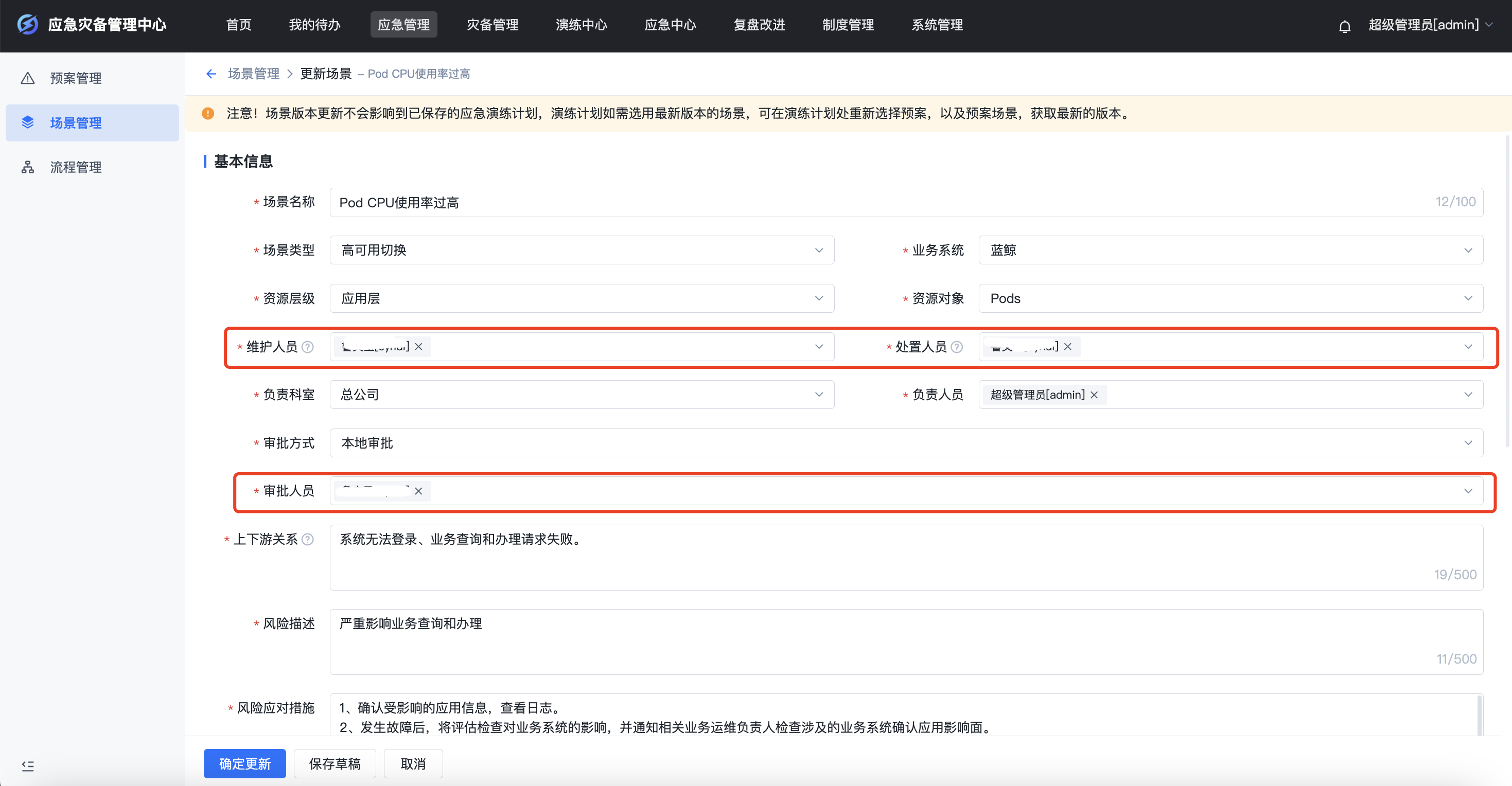 应急系统在各功能模块页面,实现实例数据的编辑、审批和执行权限的细粒度管控,实现数据权限的精细化管理。