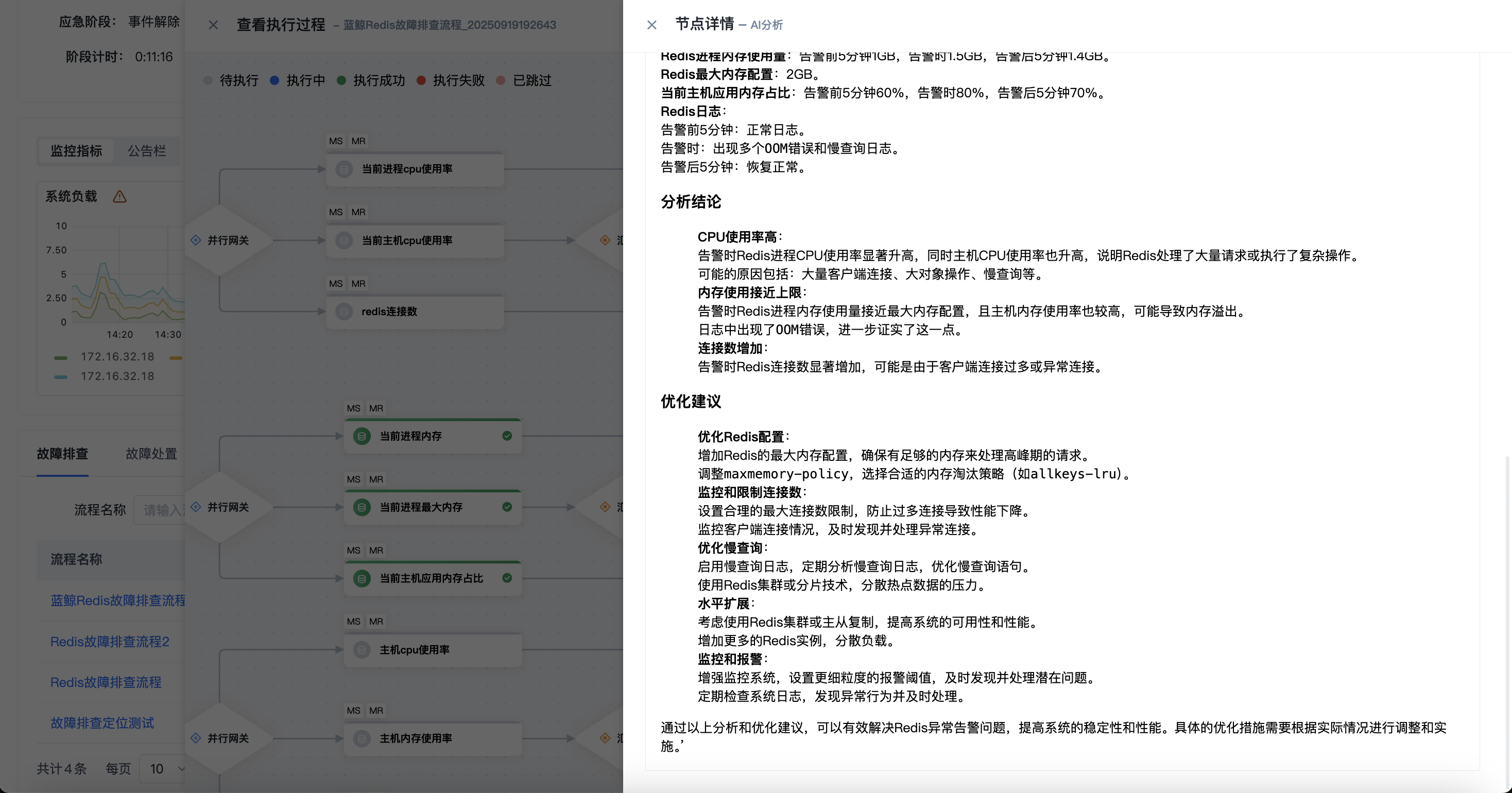 通过沉淀运维专家排查诊断经验并结合AI大模型智能分析总结,可实现已知故障场景的精准定位,通过一键式执行,大大提升排查定位效率。