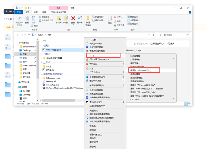 1.点击上面下载安装包,下载后解压(不要在网盘里解压),一般我分享的都是7-ZIP压缩包,所以要用他来解压。