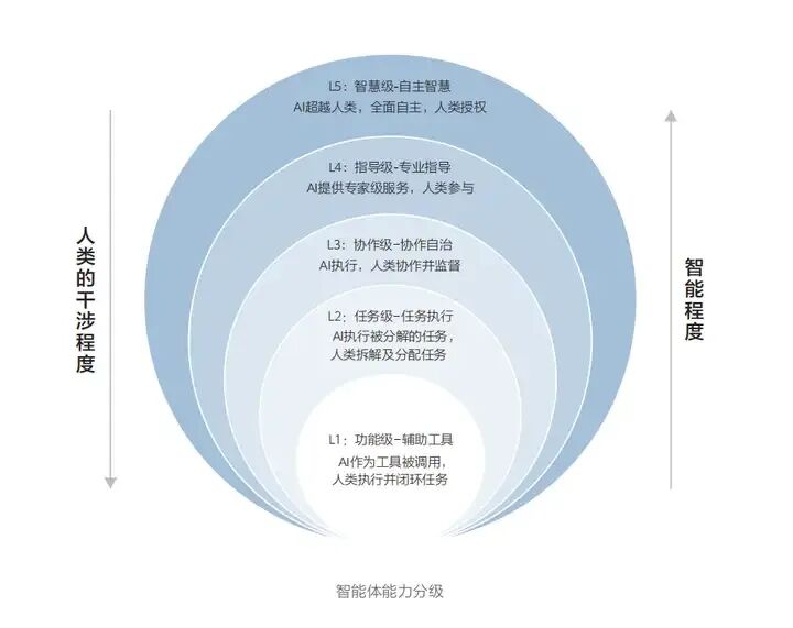 2. AI 智能体演进 | 从 “执行工具”→“决策伙伴”,分 5 级(L1-L5),核心挑战是多 Agent 协同、长程推理 | L4 级智能体规模化落地,覆盖医疗、制造等领域;智能体能力与市场渗透率呈指数关系 |