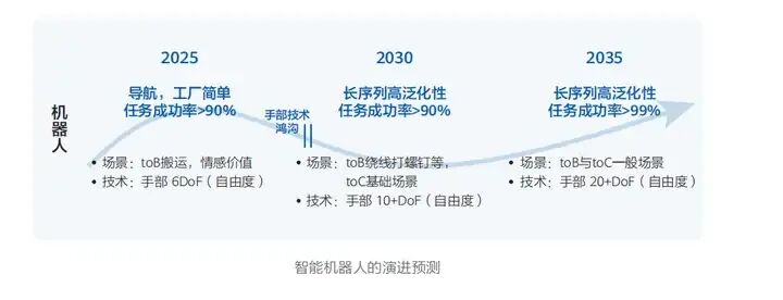 6. 具身智能应用 | 覆盖智能驾驶、智能机器人、低空经济,核心技术是 VTLA 模型(视觉 - 触觉 - 语言 - 动作) | 智能驾驶 L4 + 规模化;家庭机器人售价<1 万美金;低空飞行器电池能量密度>800Wh/kg |