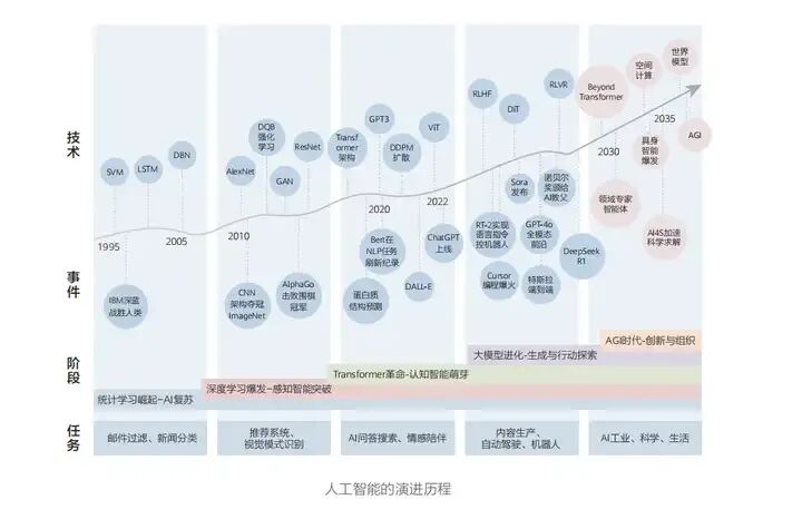AI 发展阶段:当前 AI 处于起步阶段,应用集中于问答类 AI 助手(如 ChatGPT),系统多为 “黑盒”,难以完全理解和保障;虽生成式 AI 取得突破,但尚未形成人类智能水平的系统,工业、服务领域应用潜力未充分挖掘。